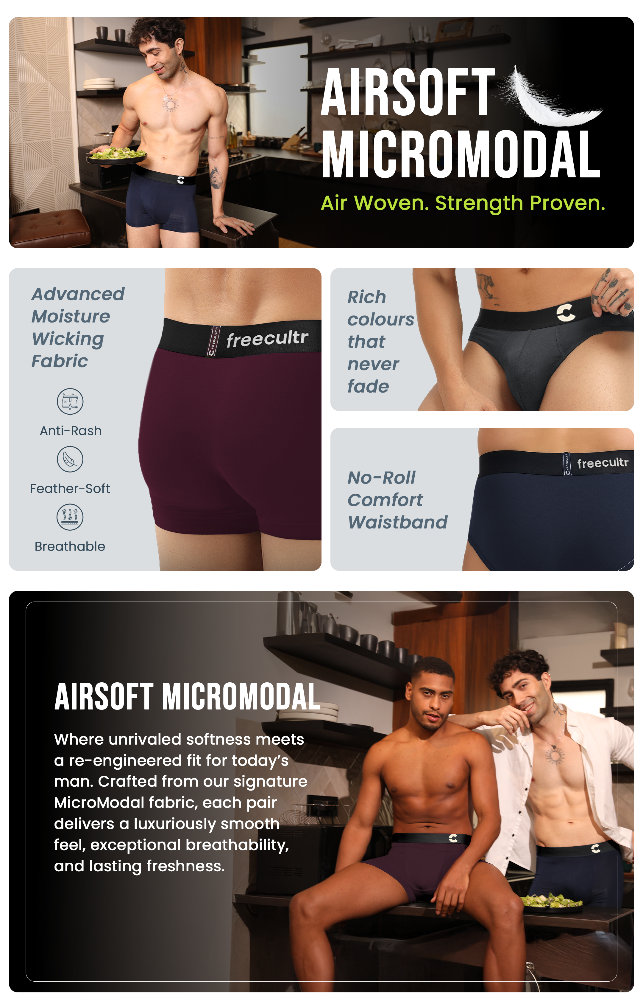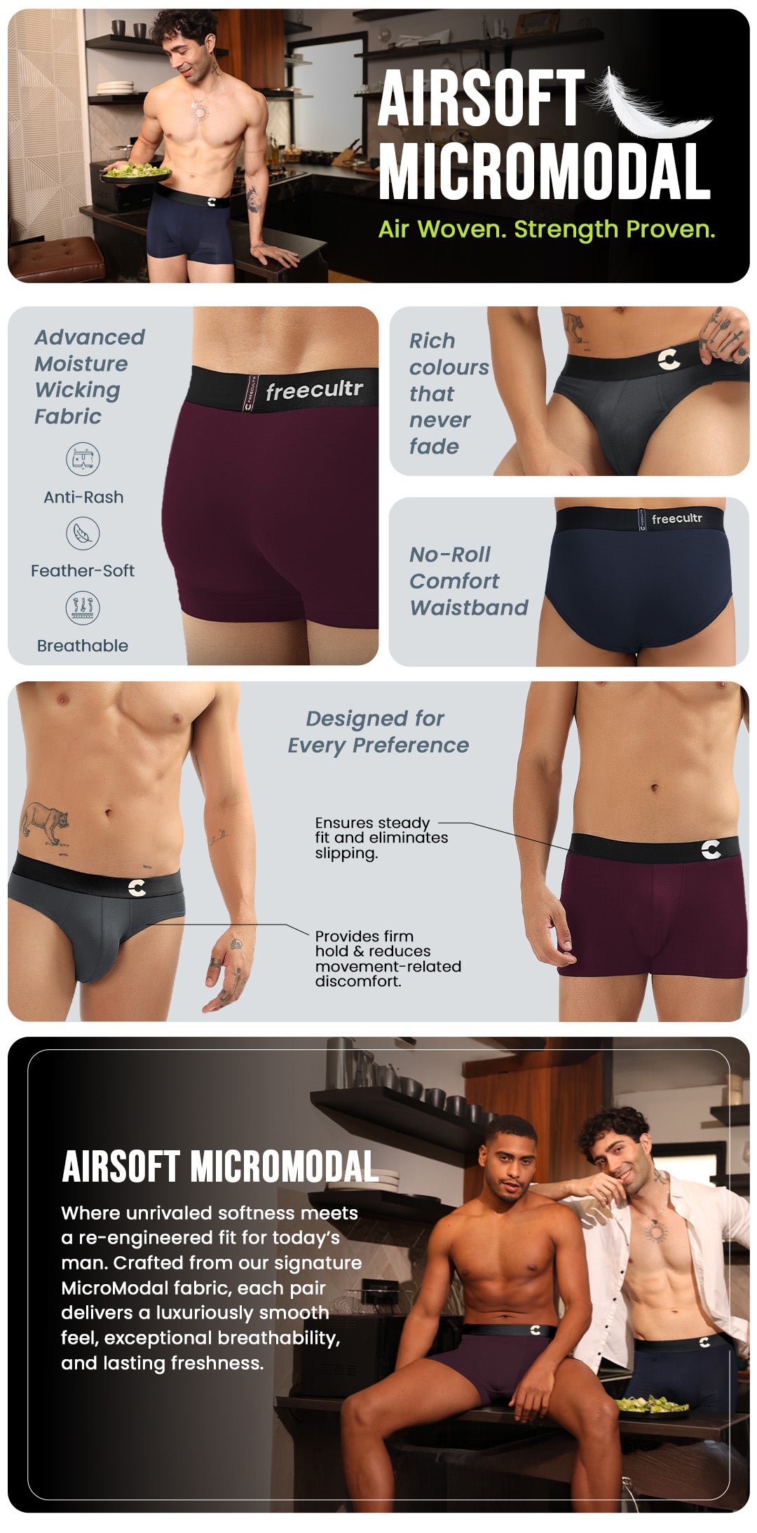 Premium Micro Modal Blend: Made with 93% Air Micro Modal & 7% Elastane for a soft, stretchy feel.