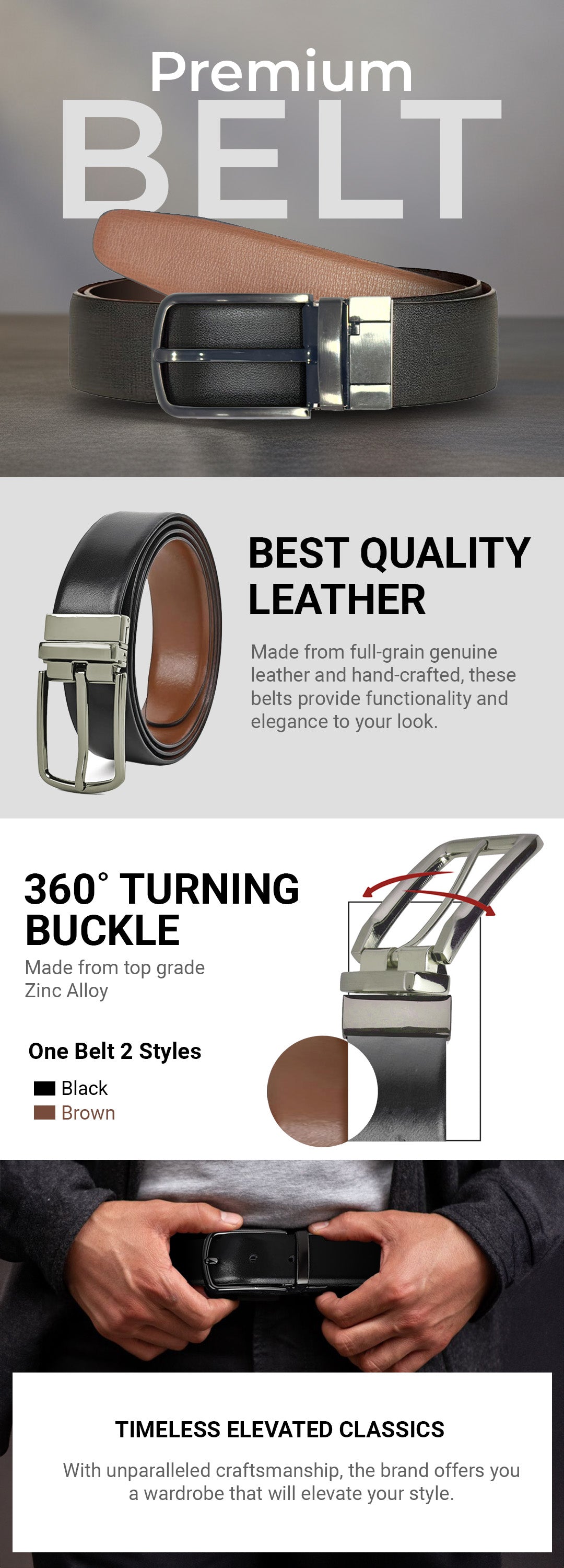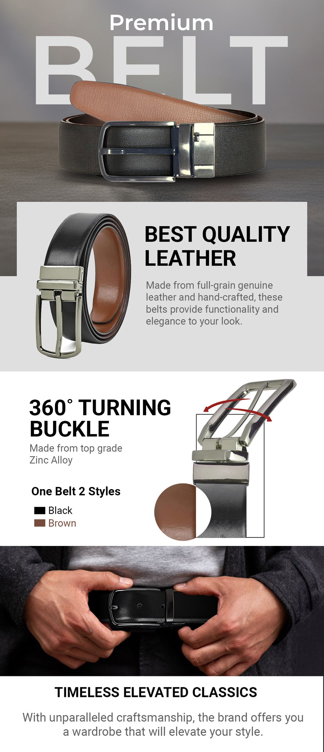 Men's DualTone Reversible genuine Leather Belt - Black & Brown