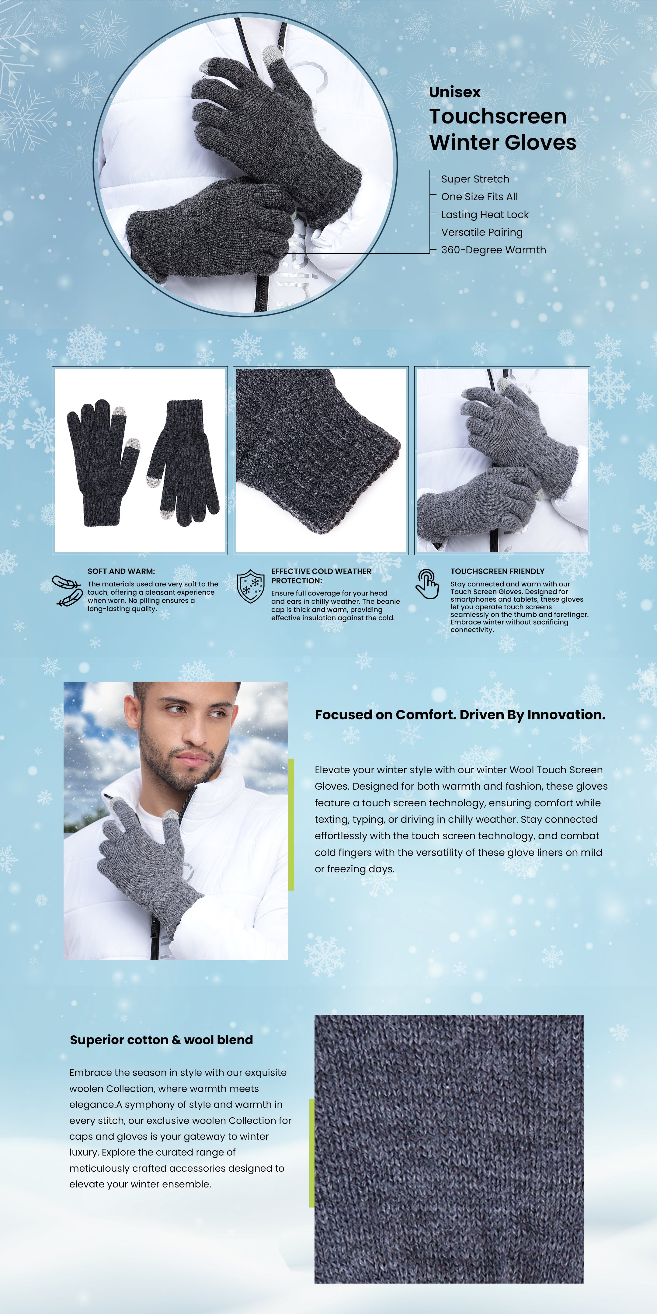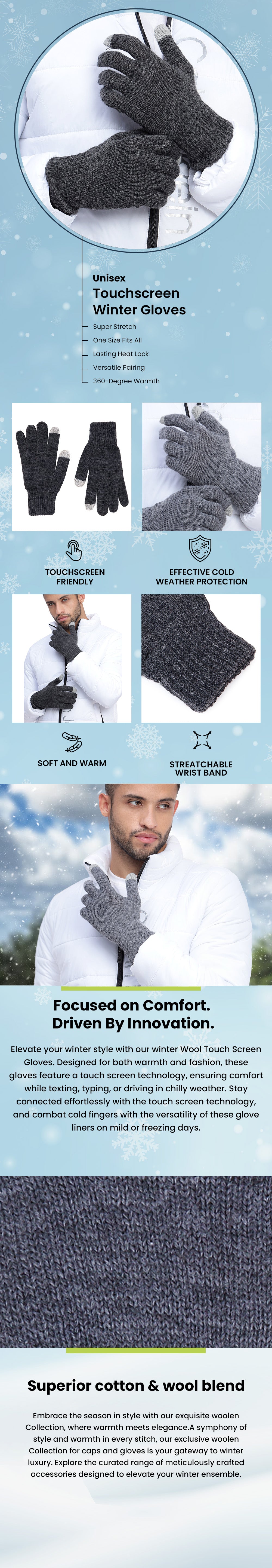 - Touchscreen Friendly:- Stay connected and warm with our Touch Screen Gloves. Designed for smartphones and tablets, these gloves let you operate touch screens seamlessly on the thumb and forefinger. Embrace winter without sacrificing connectivity.
