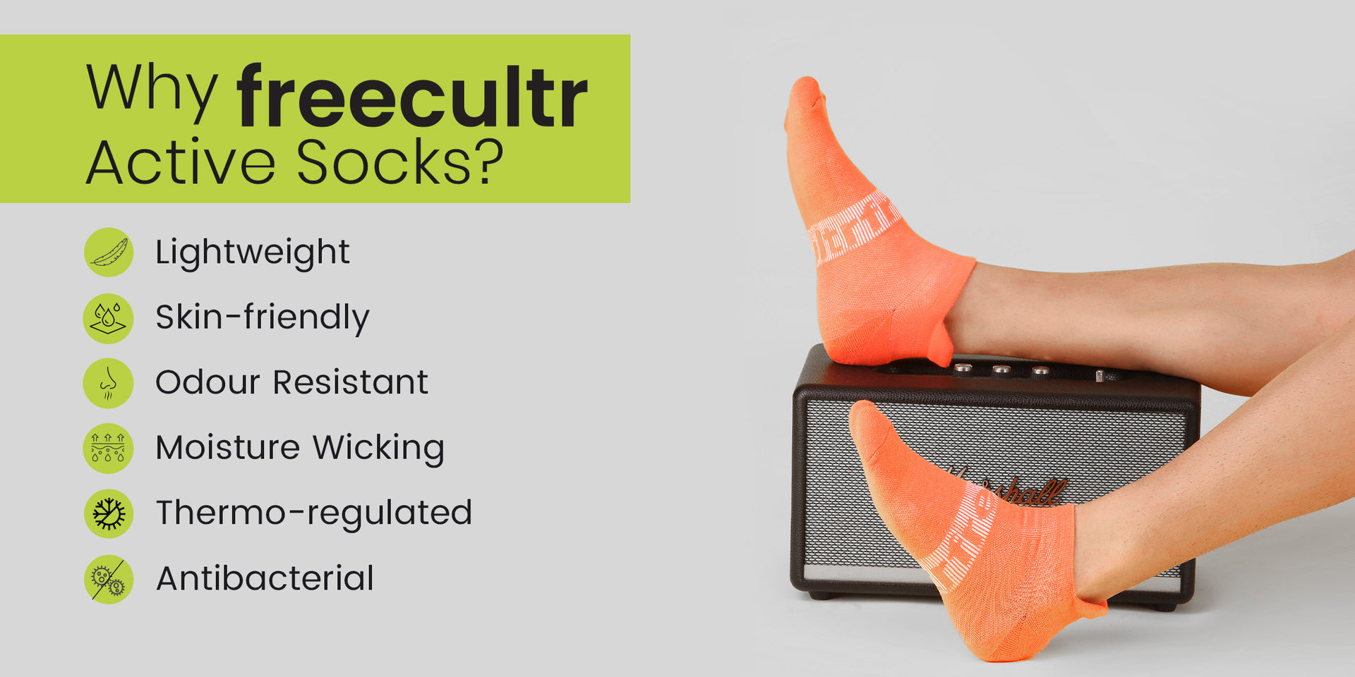 Find comfort at your feet with Freecultr’s state-of-the-art Active Bamboo Socks. It’s unlike any other ordinary socks you’ve ever seen, as the Bamboo Yarn makes it breathable, anti-bacterial, and odor-free. Our Active Socks are so light that you’d want to check if they are really there.