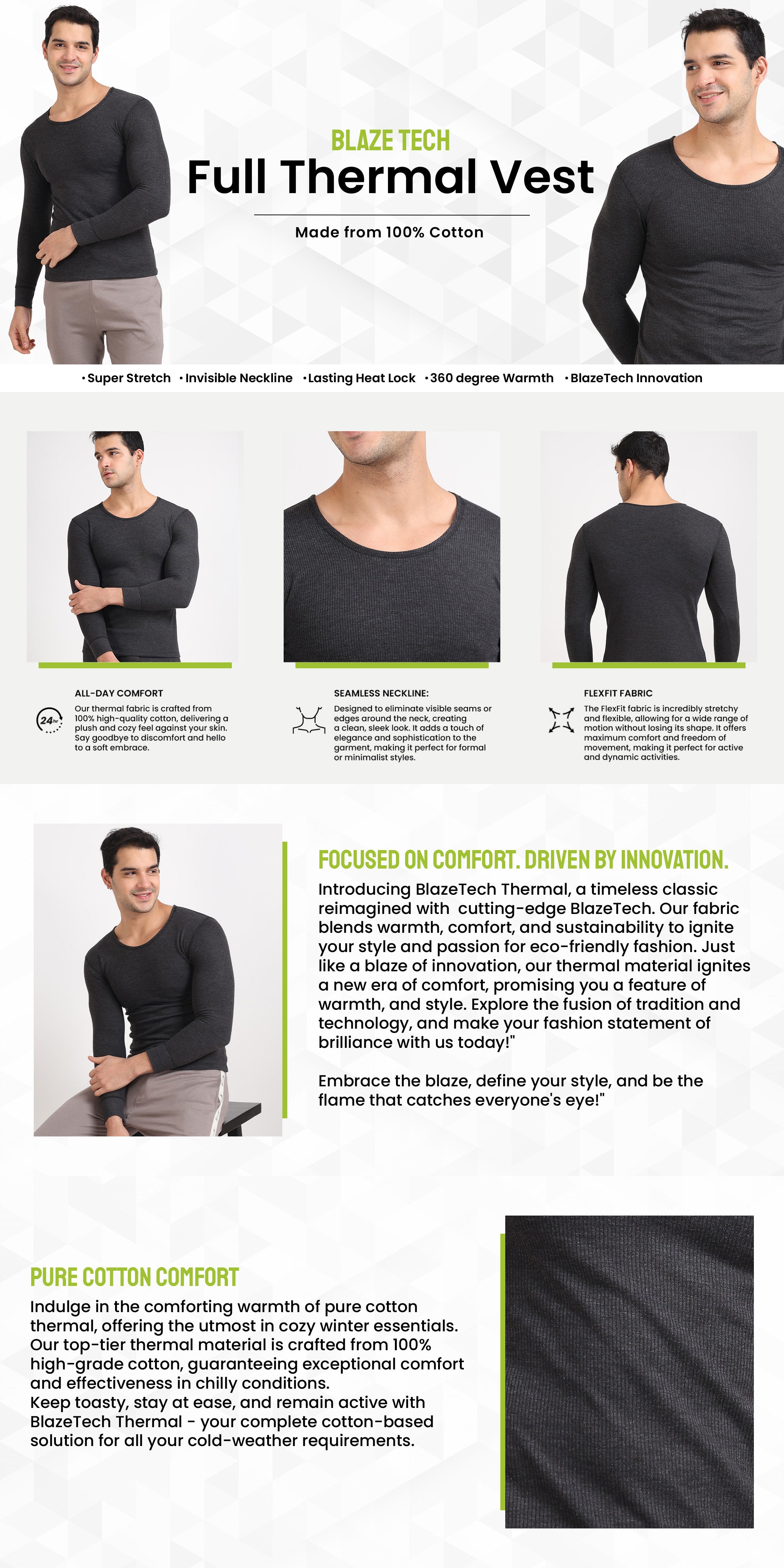 BlazeTech Thermal Vest Full Sleeves | Dark Grey