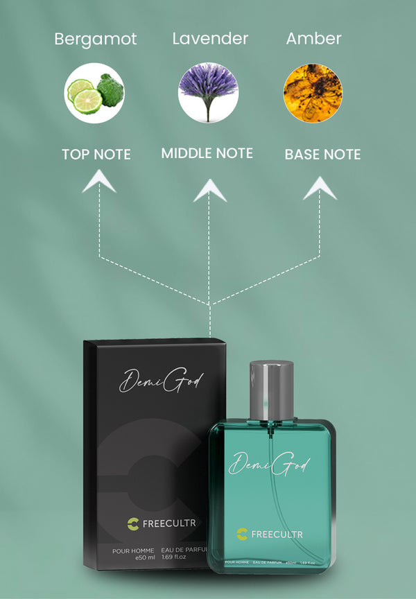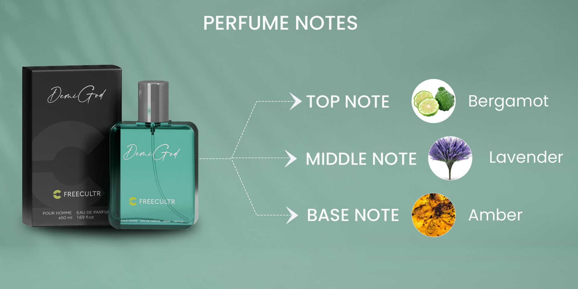 - Middle Notes: Lavender: In the heart of Demigod, Lavender unfurls its soothing and aromatic embrace, evoking an aura of serene strength and grace.
