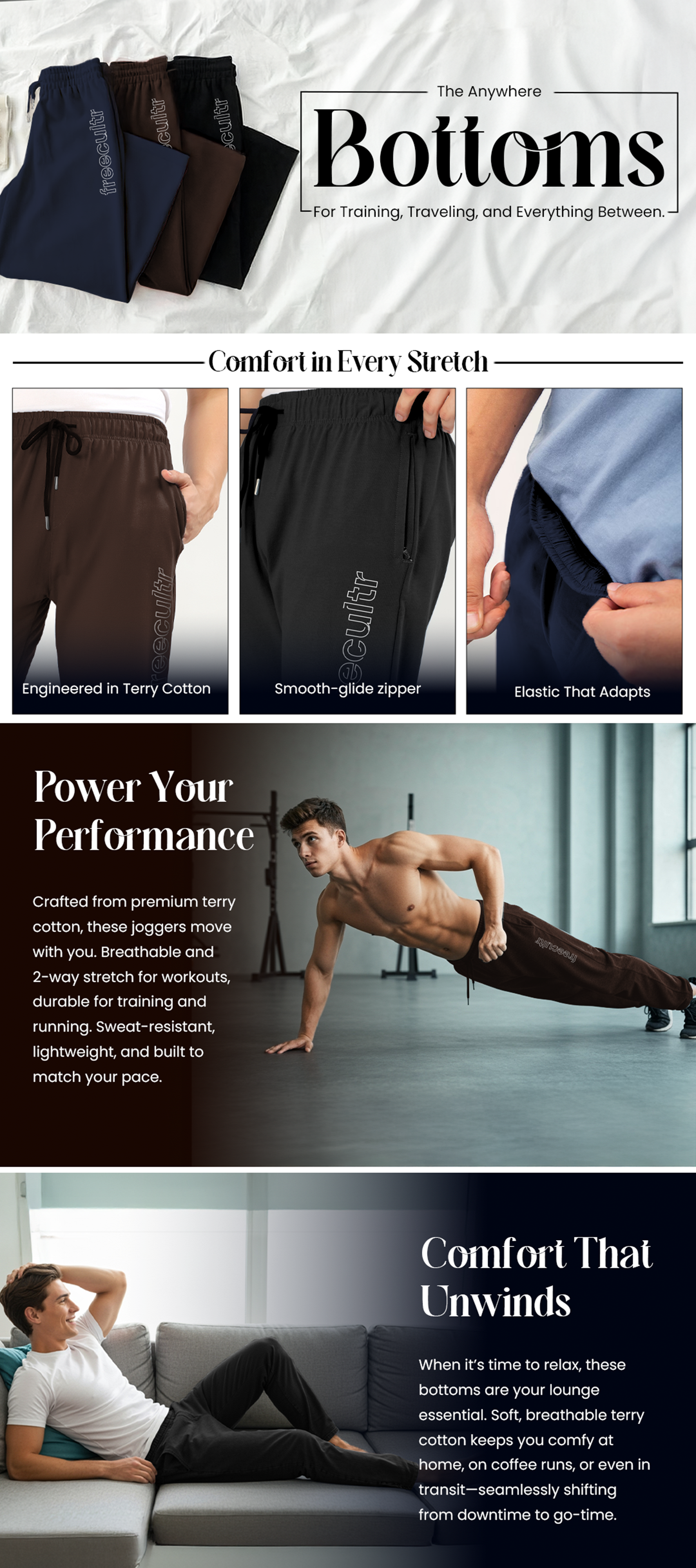 • Relaxed Fit with Stretch: Designed for full freedom of movement, perfect for lounging, sleeping, or unwinding after work.