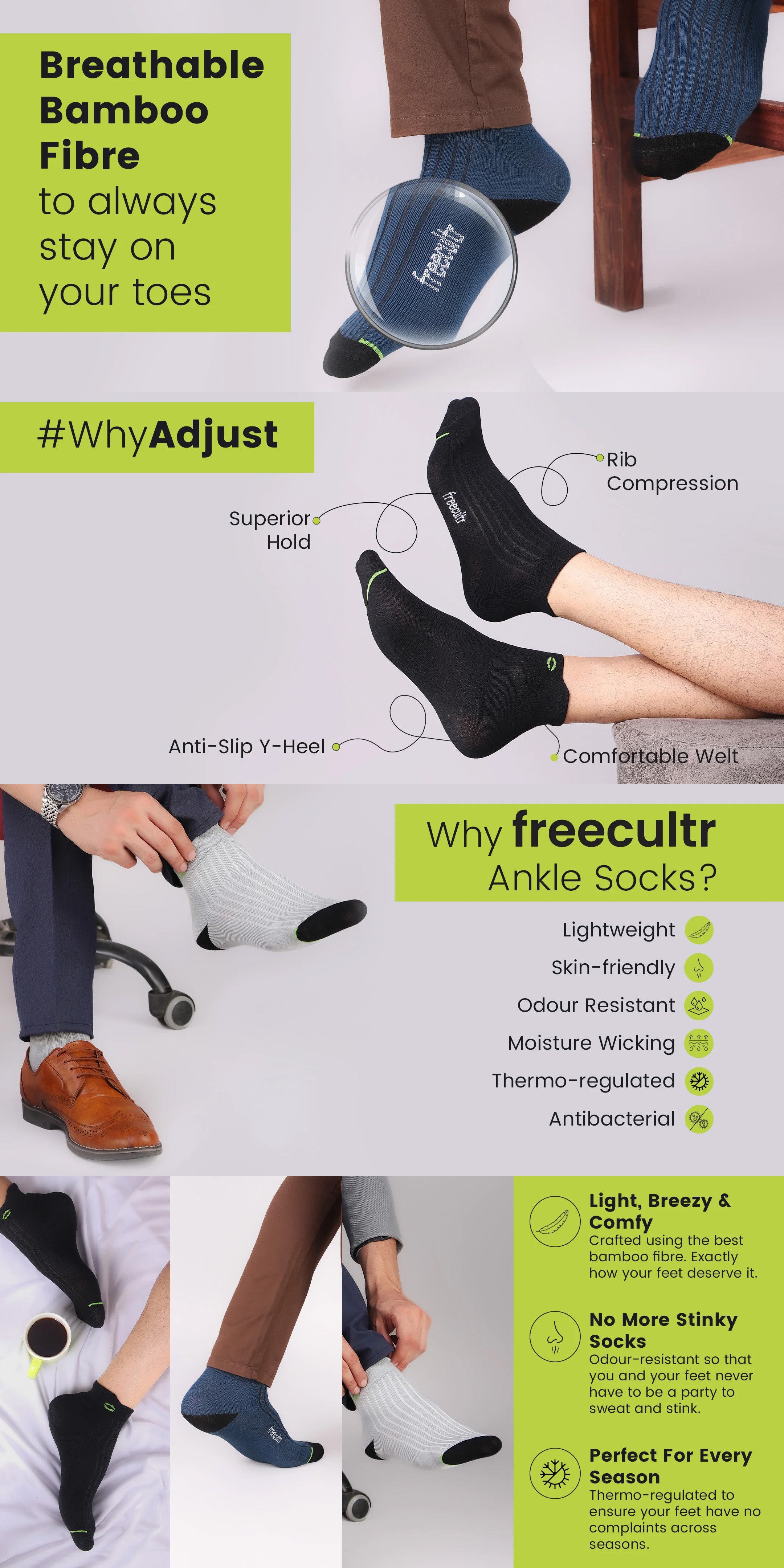Allow them to slide straight into a state of comfort with Freecultr’s Ankle Socks crafted with Breathable Bamboo Fibre to keep you on your toes. Honestly, they are everything that you can ask your socks to be. The comfortable welt hugs right at your ankle with a gentle grip, the rib compression avoids sagging, and the y-heels prevent slippage. Their odour-resistant and moisture-wicking technology ensures that sweat and stink stay kicked away throughout the day, keeping your feet feeling fresh and light. Synonymous to feather-like, these ankle socks are antibacterial, antimicrobial, and antifungal, making them skin-friendly and the ultimate pick for your feet.