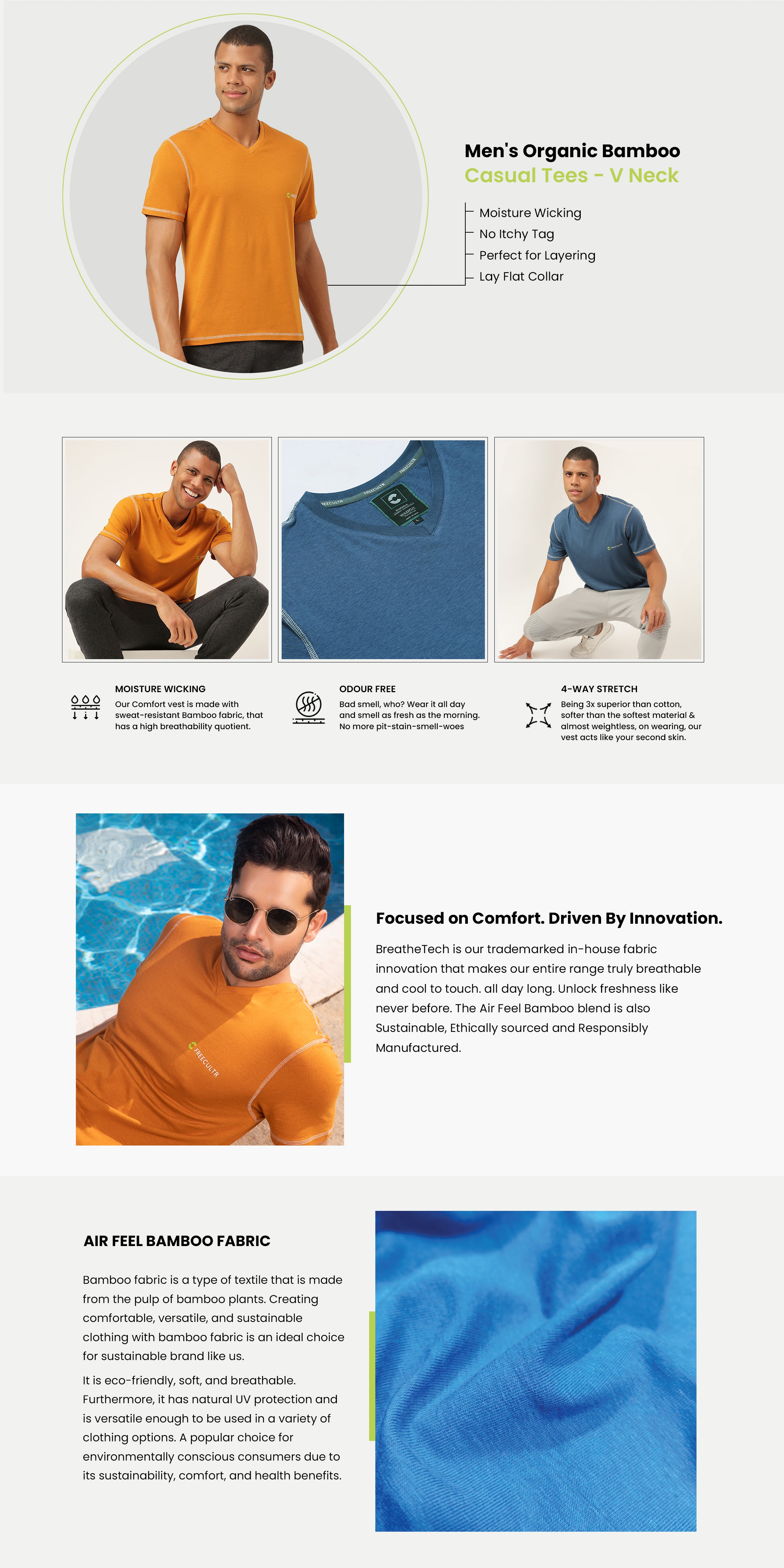 Men's Organic Bamboo Casual Tees - V Neck - (Pack of 2)