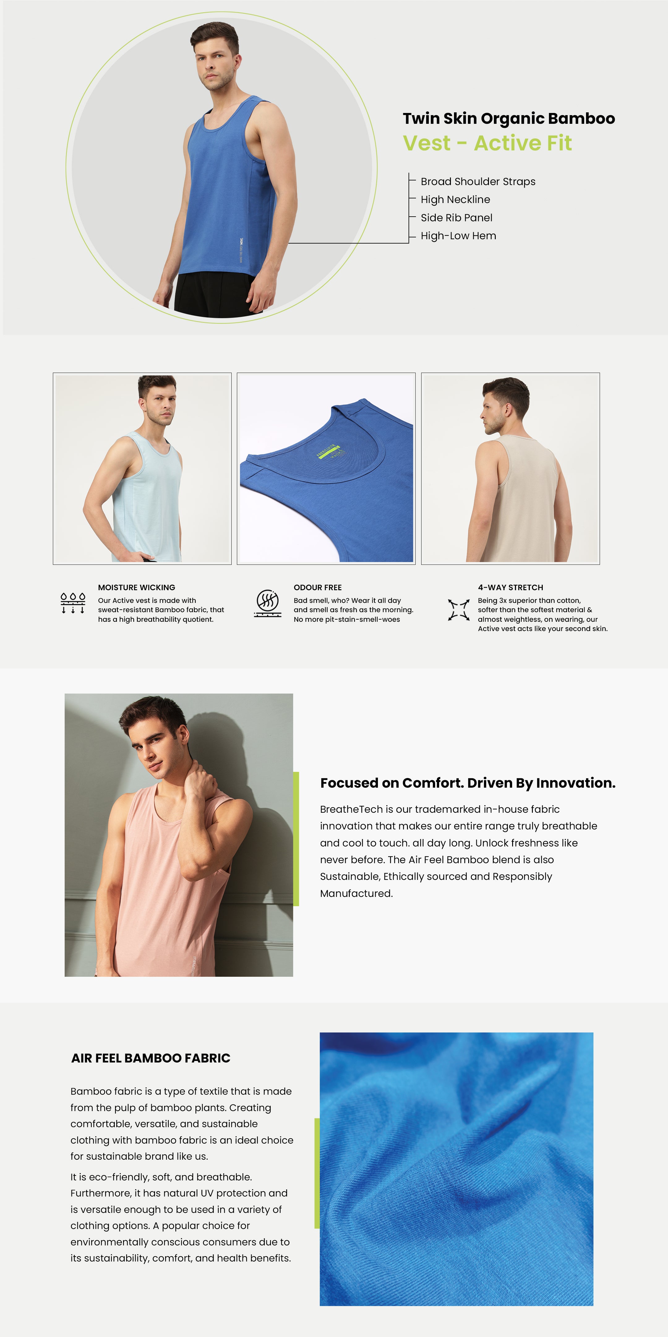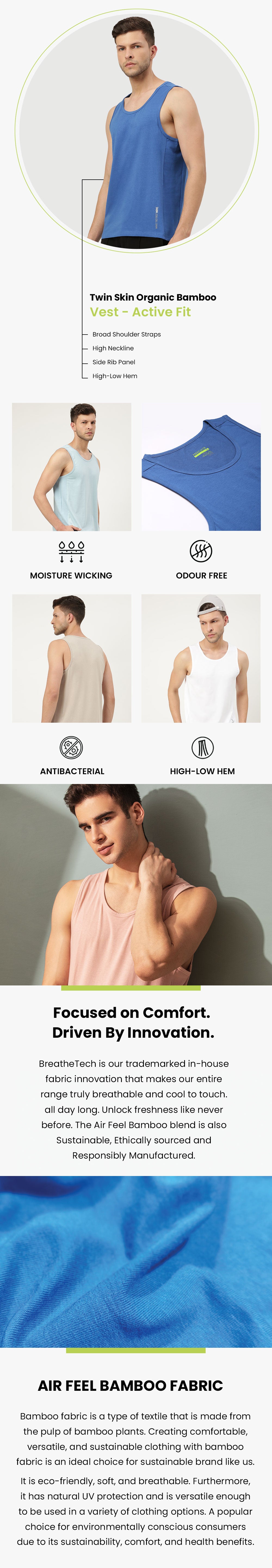 Twin Skin Organic Bamboo Vest - Active Fit (Pack of 2)