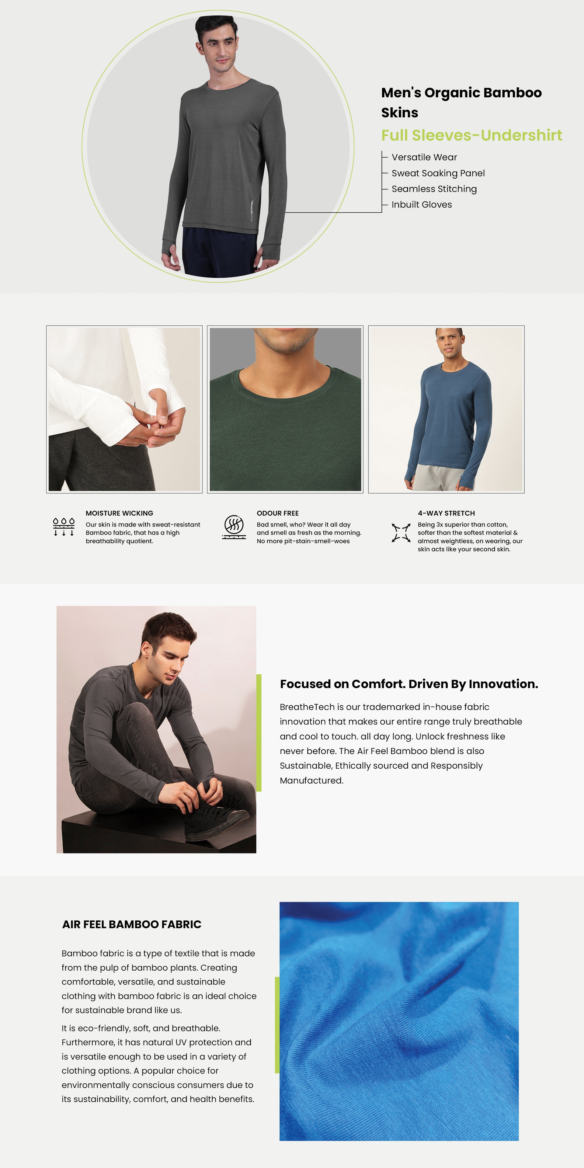 Men's Organic Bamboo Skins (Full Sleeves-Undershirt, Loungewear, Sleepwear) - Pack of 1