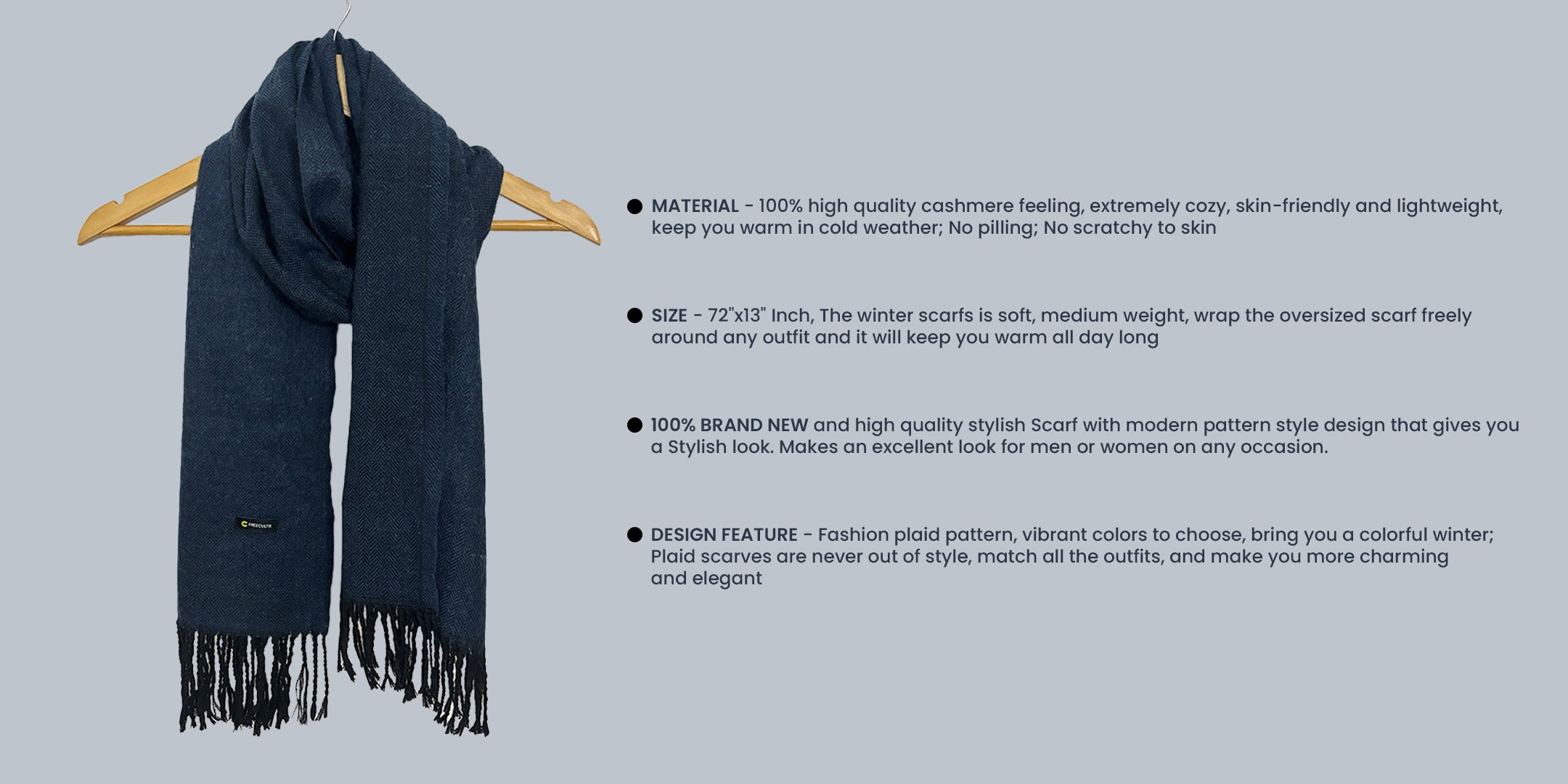 This muffler is perfect for cold weather and a great companion for autumn and winter wardrobes. It keeps the neck and chest warm for both casual and formal occasions and provides cozy warmth in cold weather.