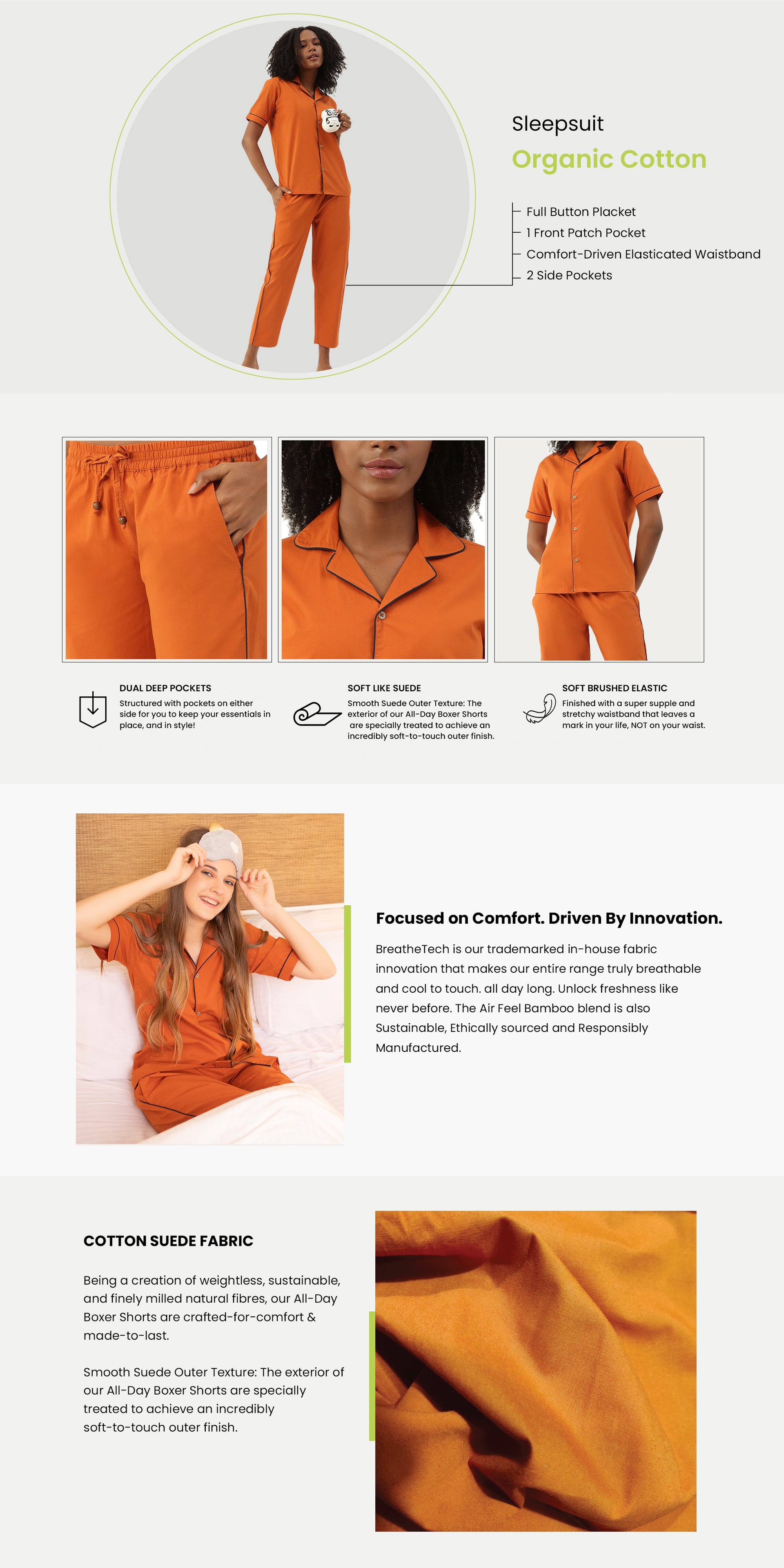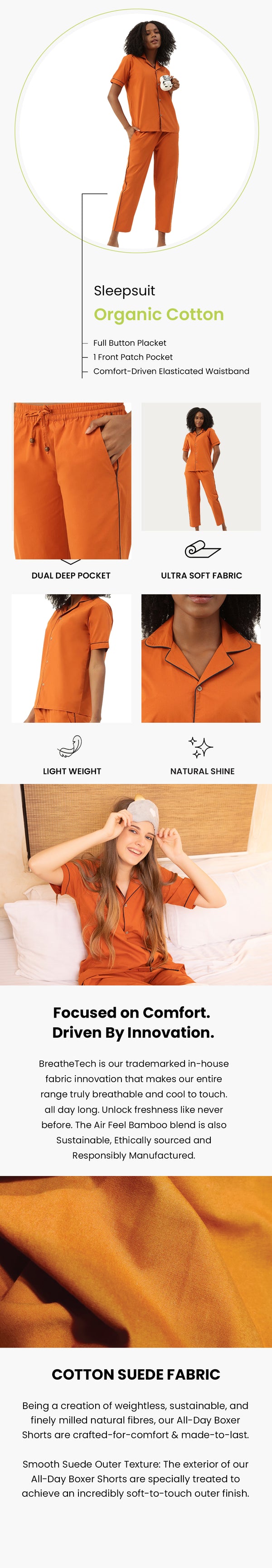 Women's Organic Cotton Solid Sleepsuit Set (Pack Of 1)